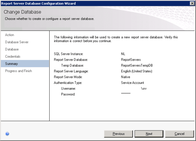 Figure 8. Report Server Database Configuration wizard.