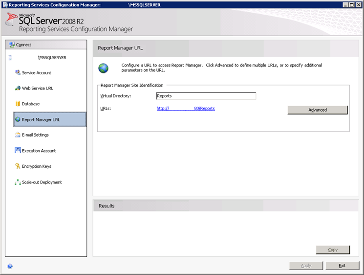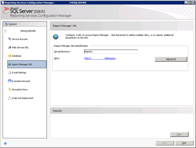 Select the Report Manager URL window and click Apply (Figure 9).