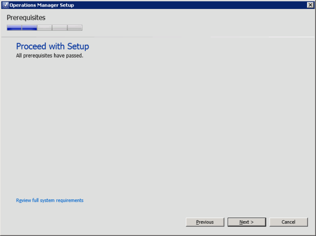 Figure 12. Operations Manager Setup, prerequisites check.