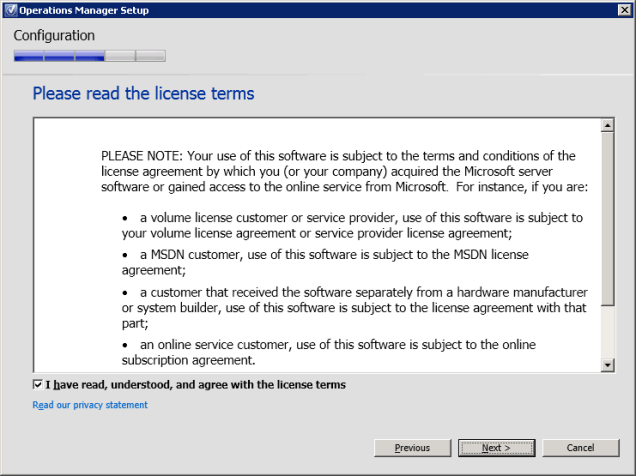 Figure 13. Operations Manager Setup, license terms.