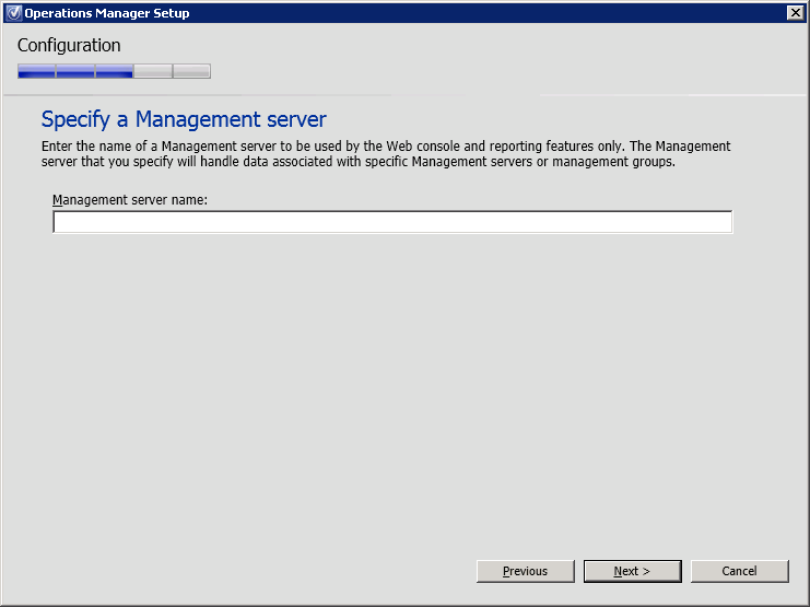 Figure 14. Operations Manager Setup, specify a management server.