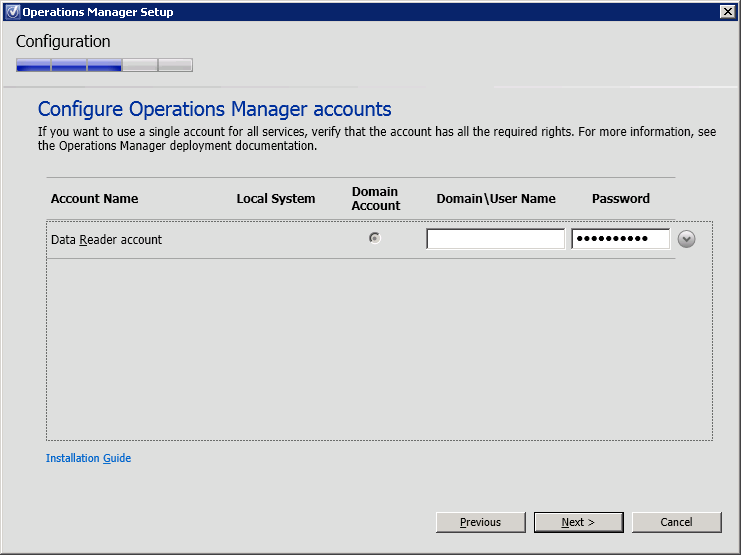 *The specified Data Reader account must have db_datareader rights on the OperationsMangerDW database.