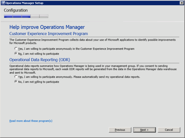 Figure 20. Operations Manager Setup, help improve Operations Manager.
