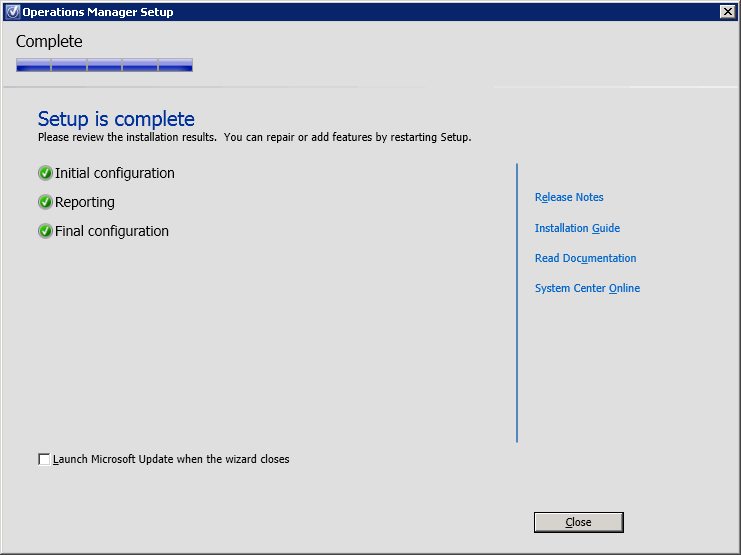 Figure 23. Operations Manager Setup, setup is complete.