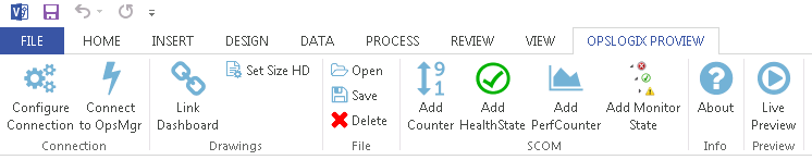 Figure 11. The ProView tab in the ribbon in Microsoft Visio