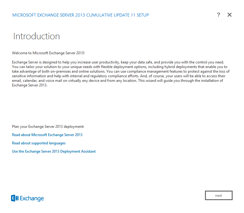 Figure 10. Introduction screen of the Microsoft Exchange Server 2013.